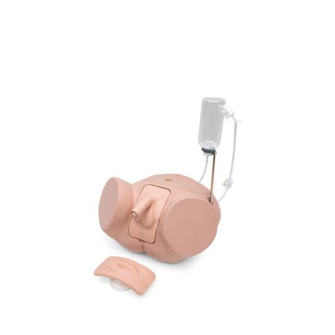 P93 PRO mendukung kateterisasi pria & wanita, memberikan resistensi dan kedalaman realistis, punya bladder transparan, abdominal wall removable, serta mendukung latihan suprapubic catheter termasuk perawatannya.