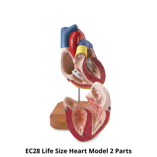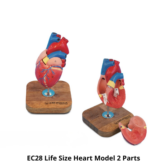 Model ini berskala life size (mendekati ukuran jantung nyata) dan terdiri dari 2 bagian dengan dinding depan yang dapat dilepas, sehingga struktur dalam terlihat jelas namun tetap sederhana dan mudah digunakan.
