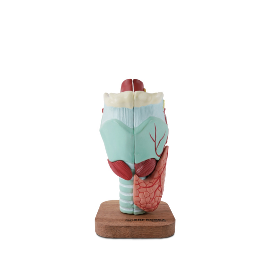 ER32 – Enlarged Larynx Model (5 Parts) adalah model anatomi laring yang diperbesar hingga 2 kali ukuran asli (2× life size) dan dapat dibagi menjadi 5 bagian untuk memperlihatkan struktur internal secara detail. Model ini dirancang untuk membantu memahami anatomi laring, termasuk kartilago dan otot yang berperan dalam pernapasan dan pembentukan suara (fonasi).