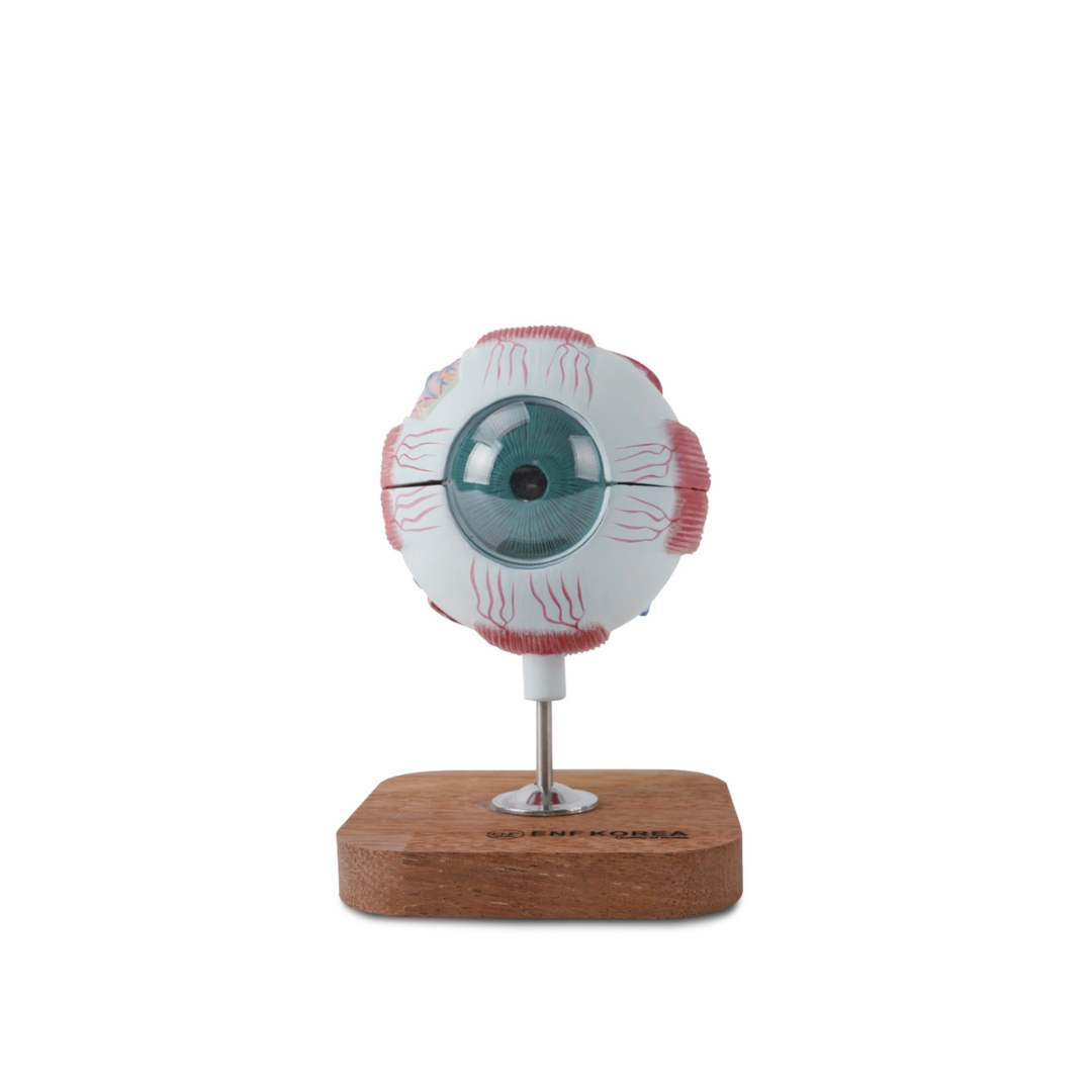 Beberapa komponen utama seperti kornea, iris, lensa, dan vitreous body dapat dilepas untuk memudahkan pembelajaran. Selain itu, model ini juga menampilkan perlekatan otot pada sclera serta sebagian struktur choroid, sehingga membantu memahami hubungan anatomi dan fungsi sistem penglihatan.