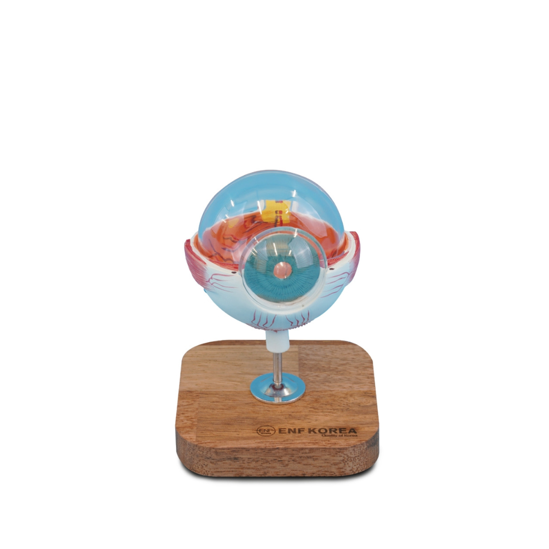 Bagian lensa dan kornea dapat dilepas, sehingga memudahkan proses pembelajaran tentang jalur cahaya dan fungsi masing-masing struktur. Model ini juga dilengkapi dengan kartu edukasi yang berisi label dan penjelasan bagian-bagian mata, sehingga sangat membantu dalam proses pengajaran maupun edukasi pasien.